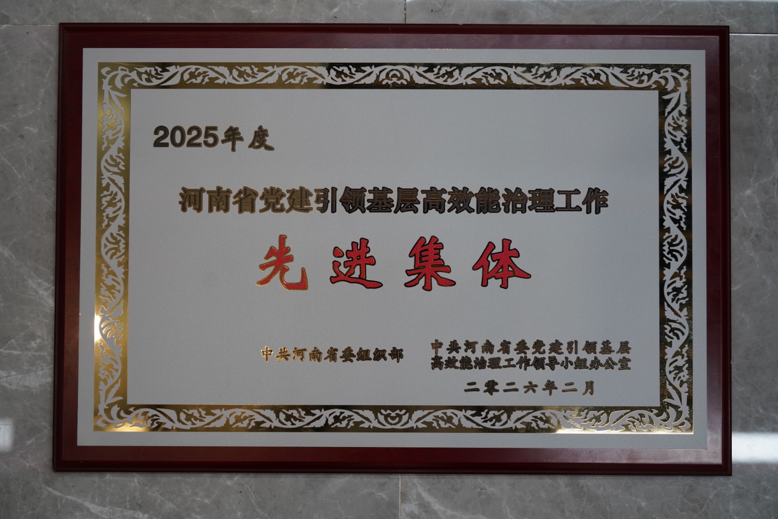 公司榮獲“2025年度河南省黨建引領(lǐng)基層高效能治理工作先進(jìn)集體”榮譽(yù)稱號(hào)